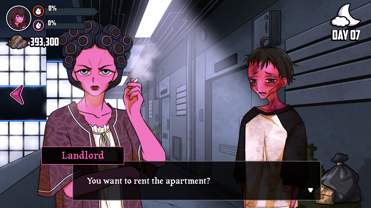 Does Hunger and Thirst matter? Nevermind, decided to risk the police in the Empty Street? If it's too low for too long, she actually does get dirtier? Woo! I waited it out and took the Police ending because I needed more drink but had bad 100 rolls.